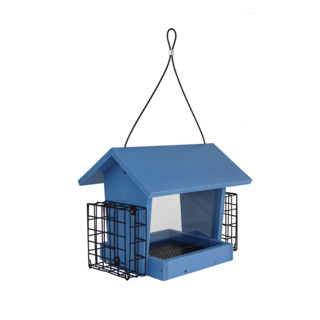 Blue Hopper Hangout Recycled Bird Feeder