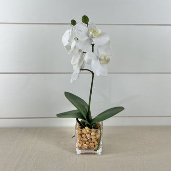 White Orchid in a Square Glas...