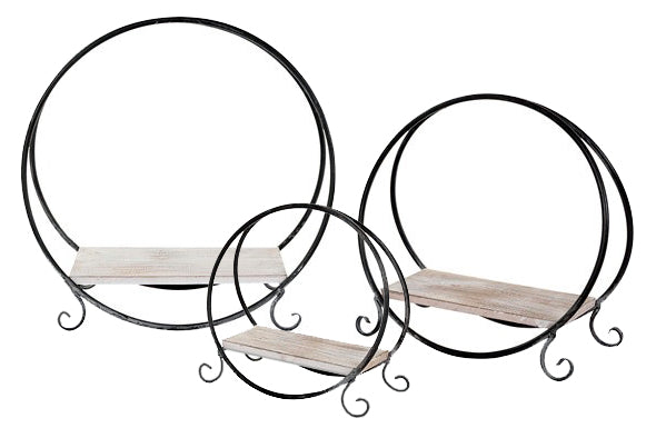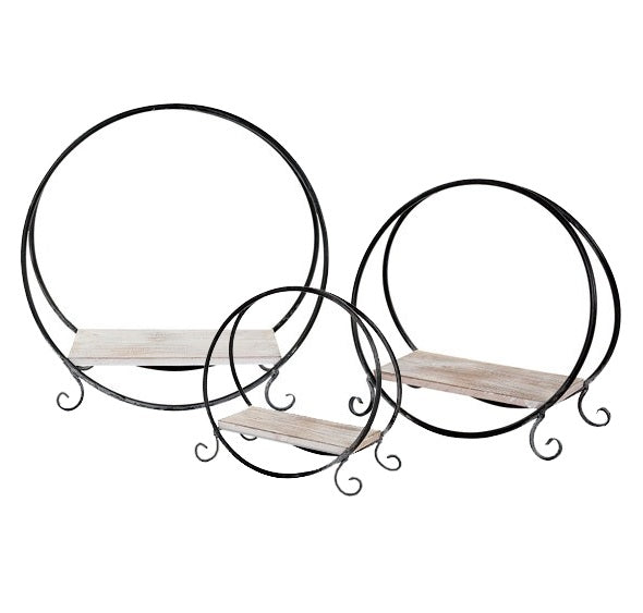 Black Metal and Wood Round Free Stand Shelf