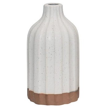 The Serenity Ribbed Vase is crafted from clay and features a flat ribbed design, offering a simple yet textured look. Perfect for displaying flowers, greenery, or standing alone as a decorative accent, it brings understated elegance to any space.