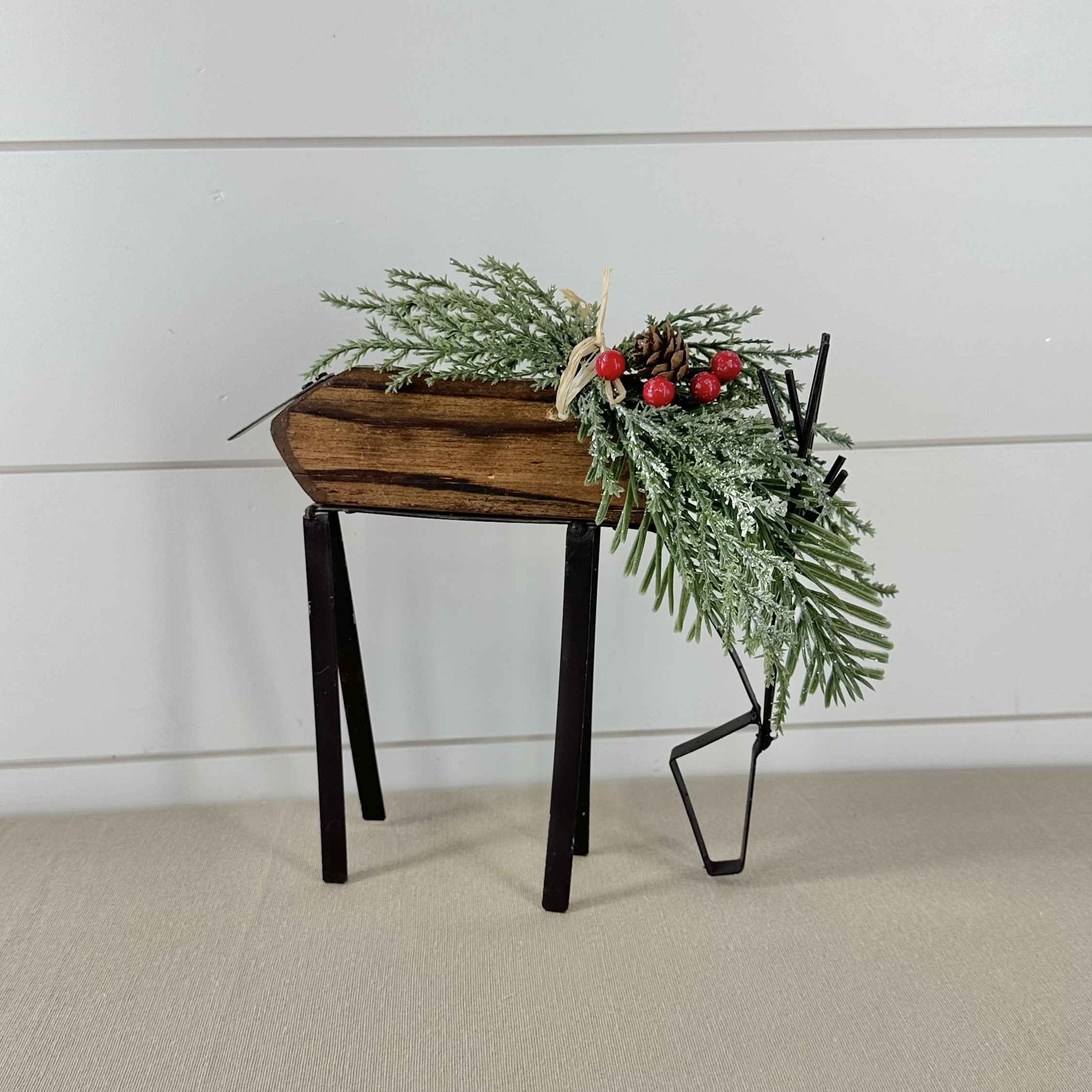 Glittered Wood & Brown Metal Deer w/Pine
