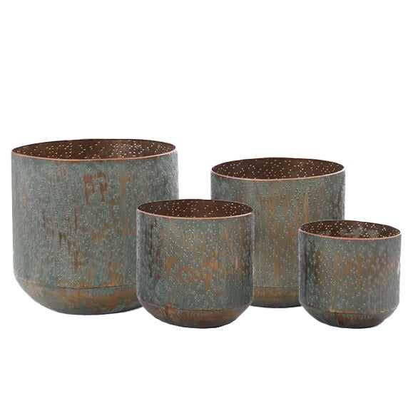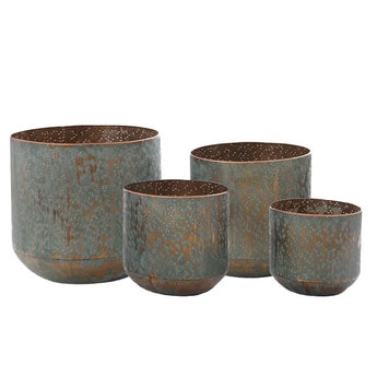 These bronze pots have a softly aged patina that adds warmth and character to any space.