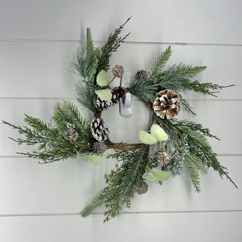 15 Inch Pine Candle Ring w/Light Green Berries Large & Mini Pinecones