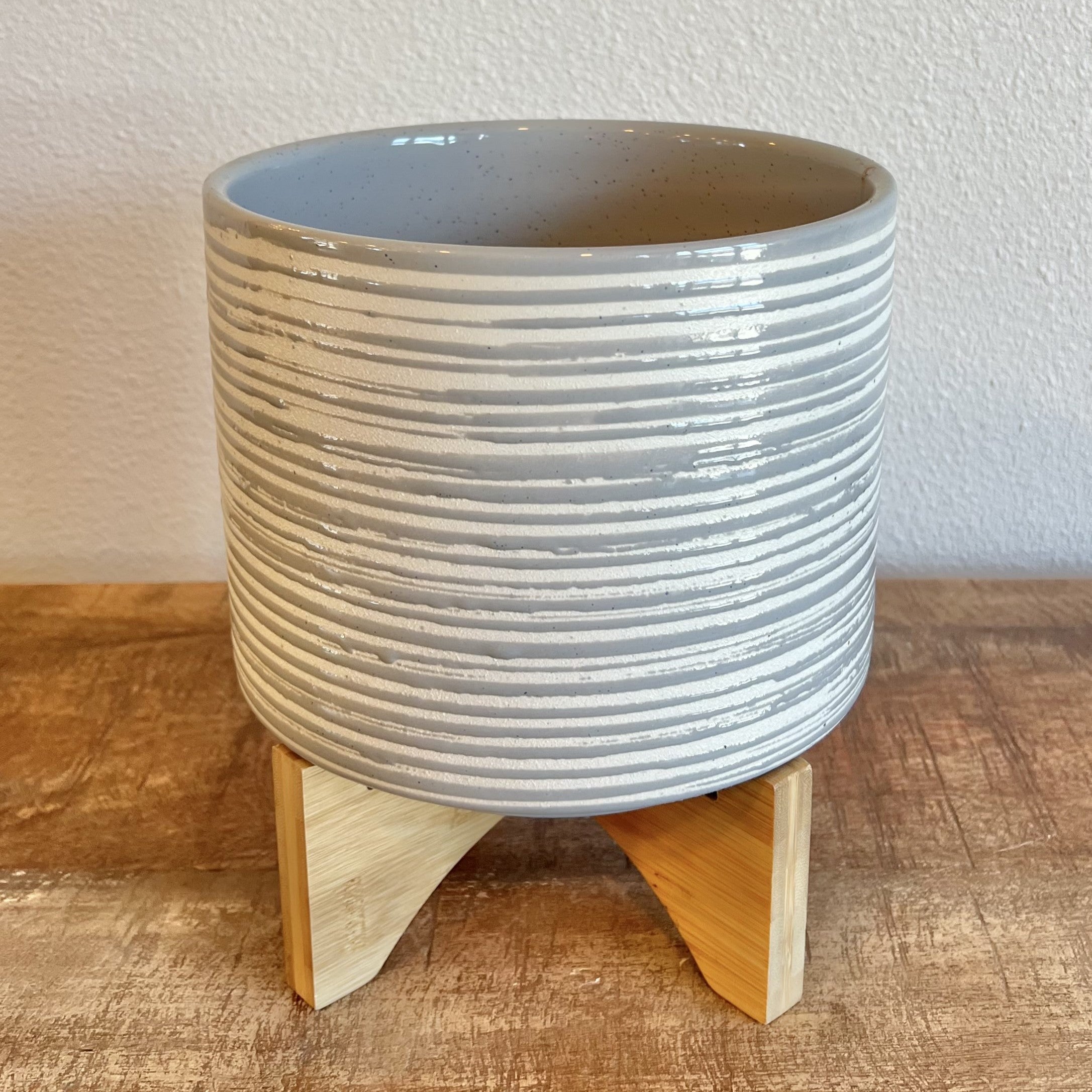 Ceramic Planter with Stand - Grey & White