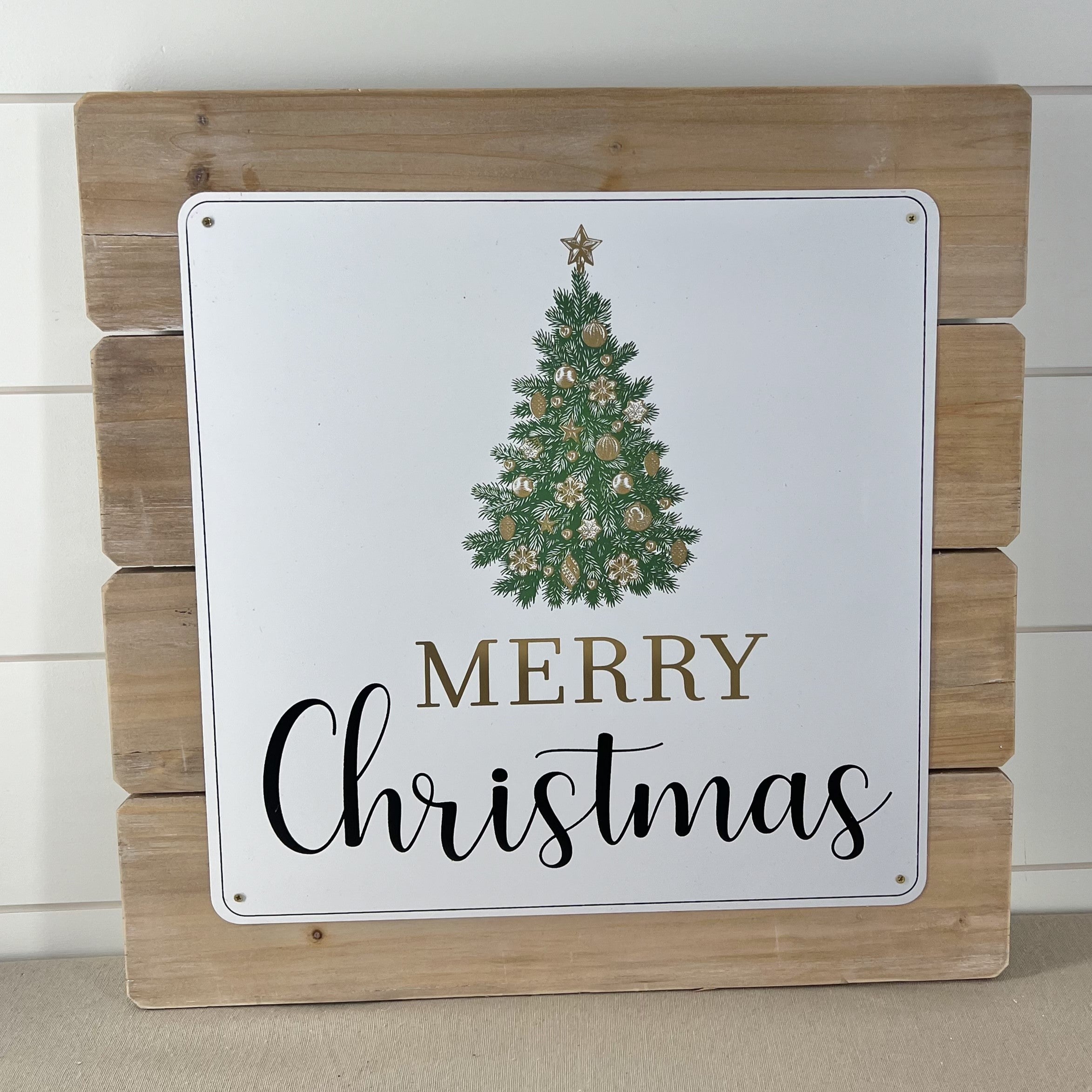 15.75 Inch Wood Slat Christmas Signs w/White Enameled & Gold Saying