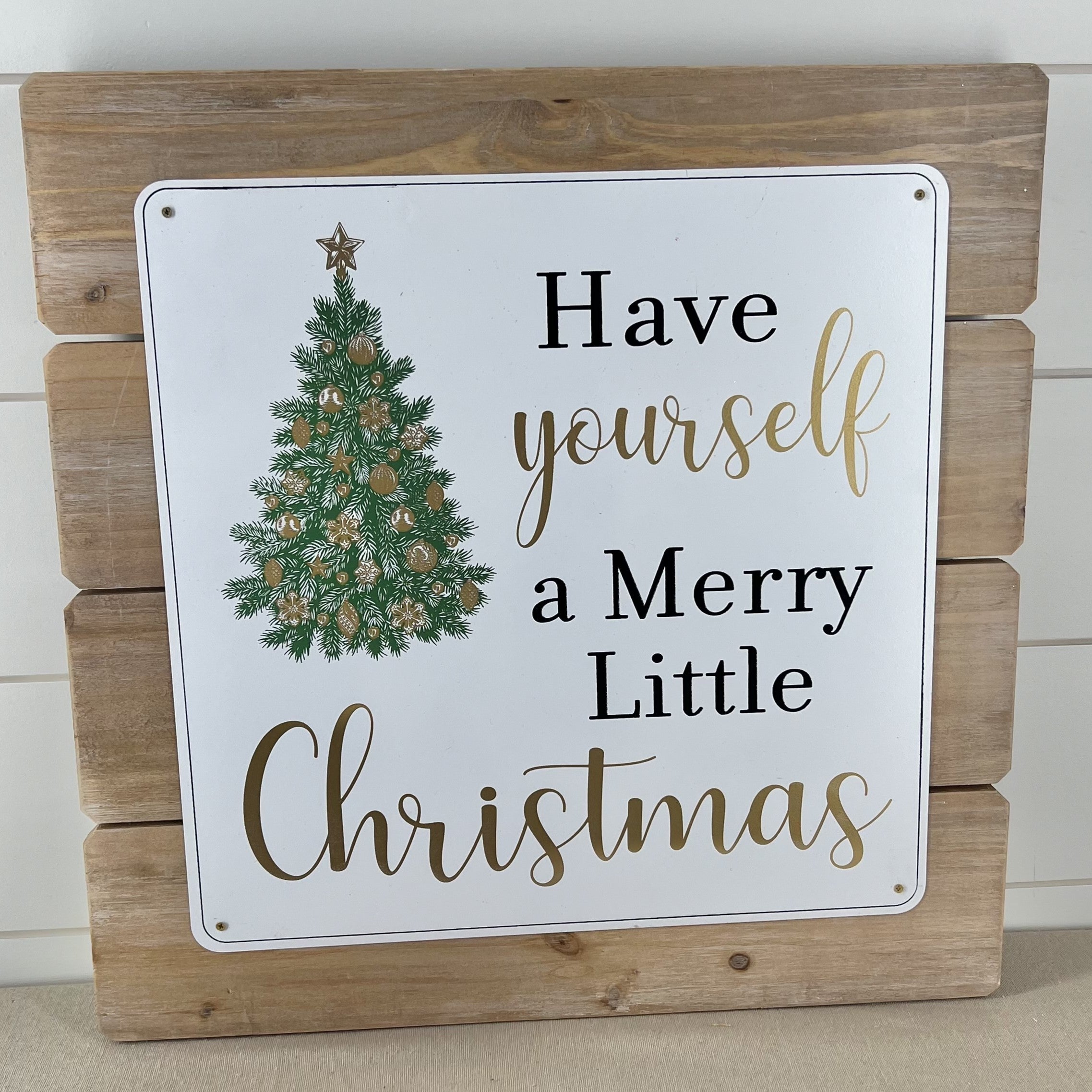 15.75 Inch Wood Slat Christmas Signs w/White Enameled & Gold Saying