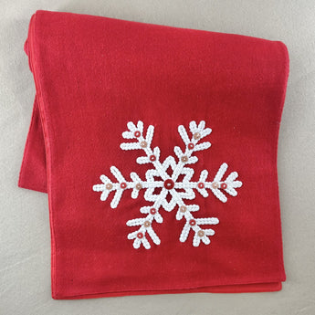 70 Inch Red Table Runner w/White Snowflake