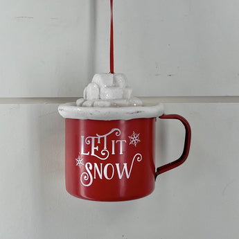 Metal Hot Coco Mug Ornaments w/Glittered Marshmallows