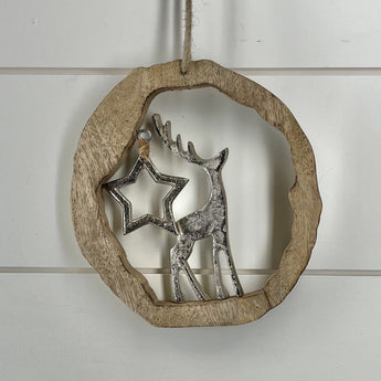 Metal Deer in Wood Ornament