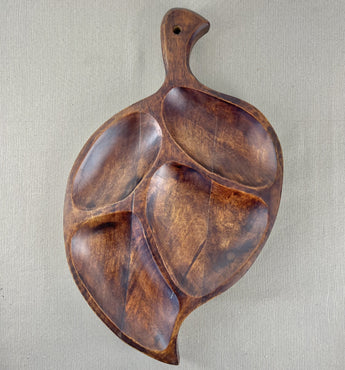 Carved Wood Divided Leaf Tray