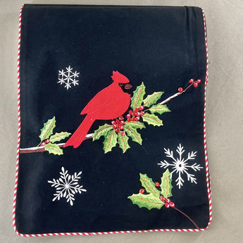 72 Inch Black Table Runner w/Embroidered Cardinal