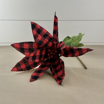 30 Inch Red and Black Buffalo Check Poinsettia Stem