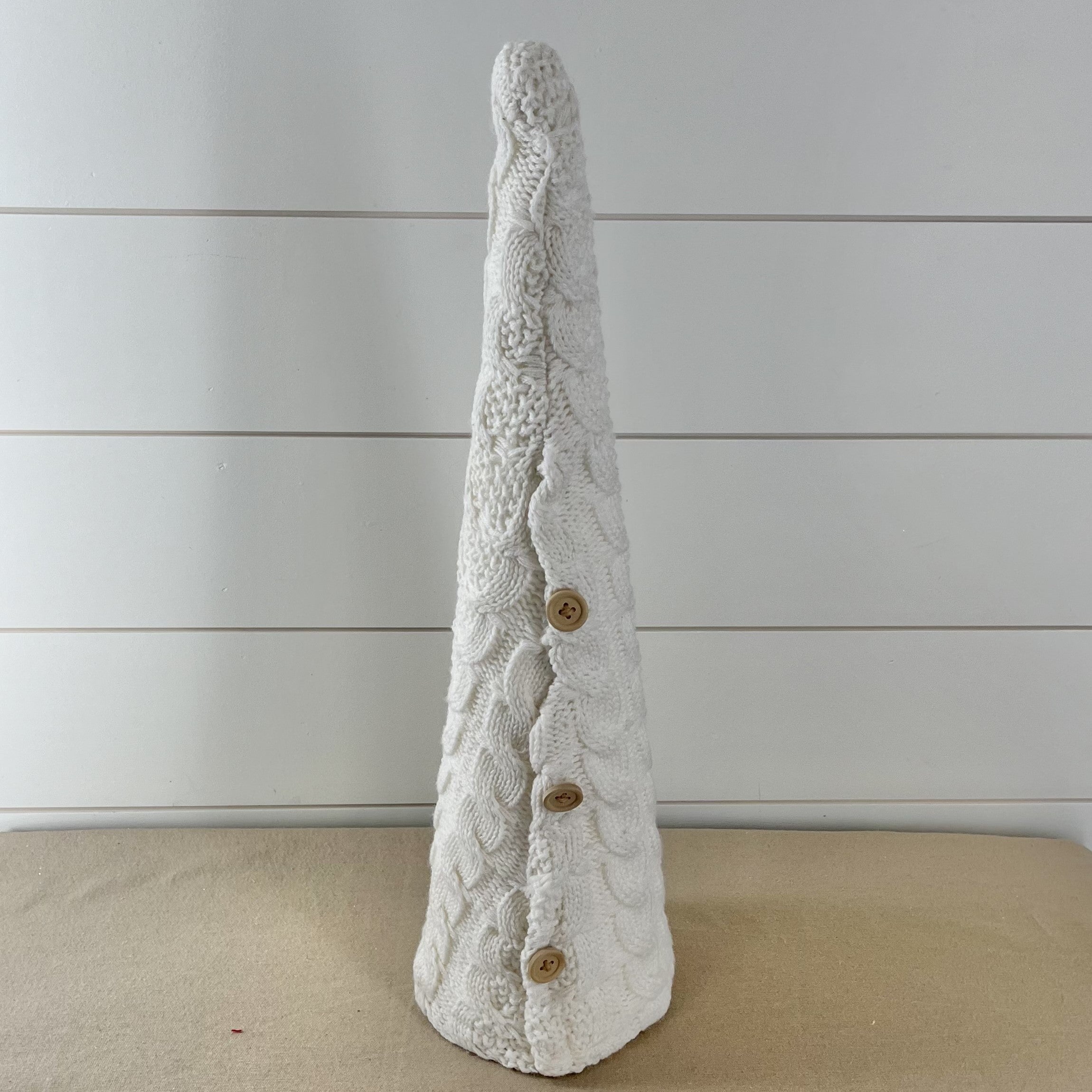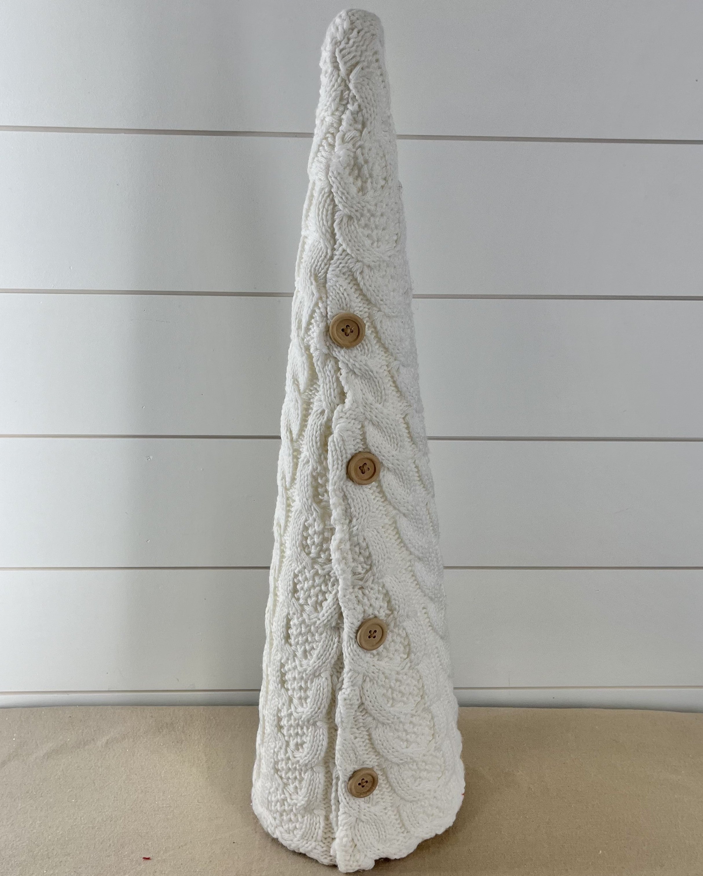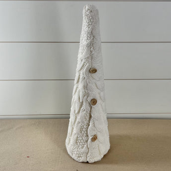 Knit Cone Tree with Buttons - White
