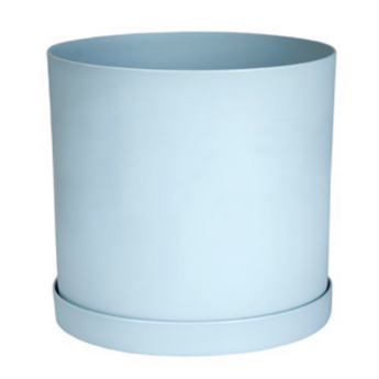 Pale Blue Plastic Mathers Planter with Saucer