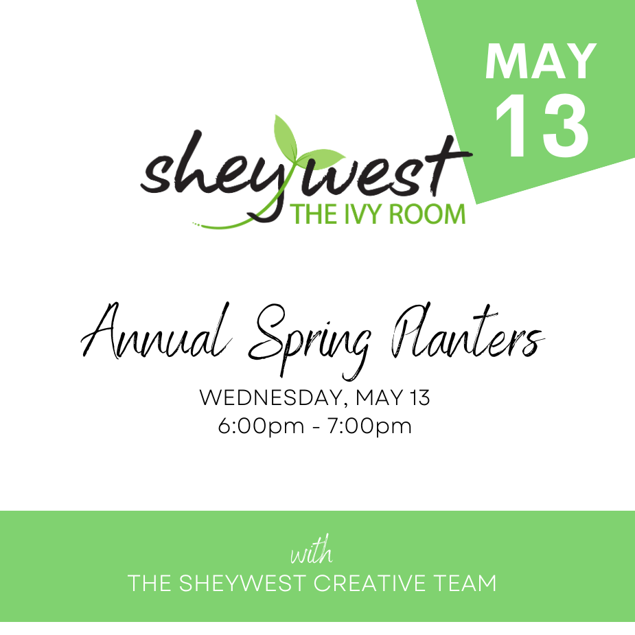 Join the SheyWest team in the greenhouse for a hands-on workshop where you’ll design and plant a beautiful, modern annual planter perfect for your space! With expert guidance, you’ll select the best plants, put your arrangement together, and take it home the same day.