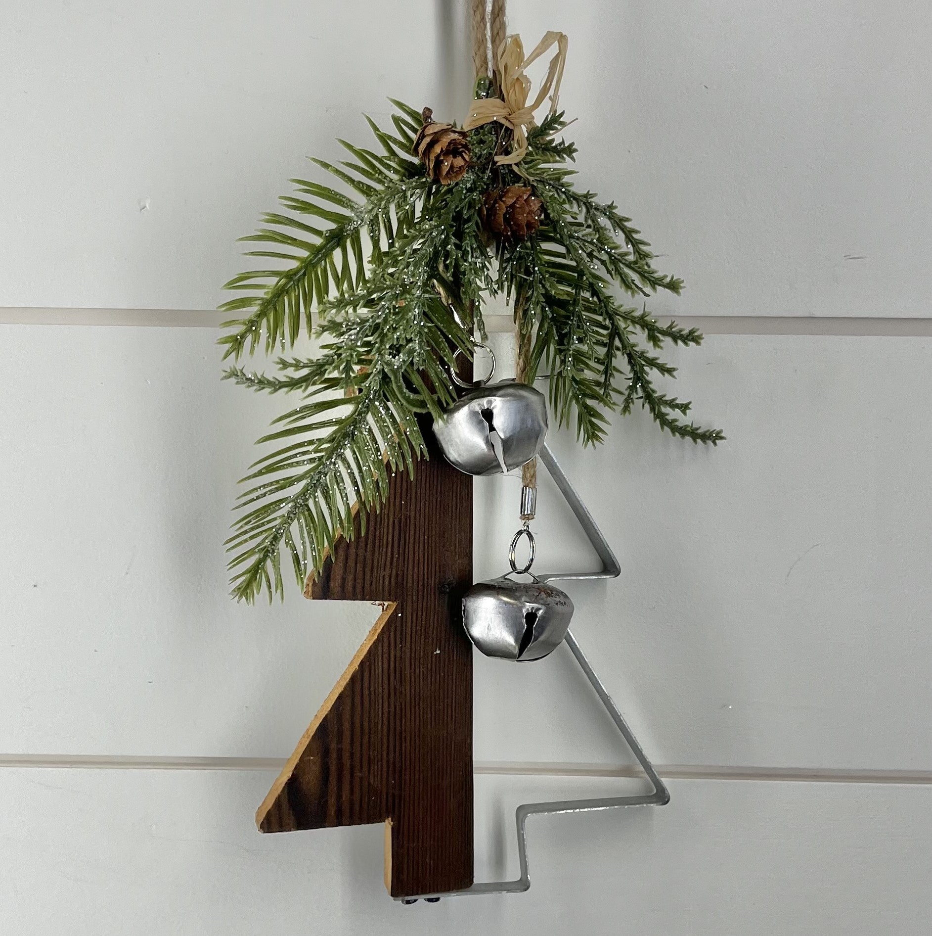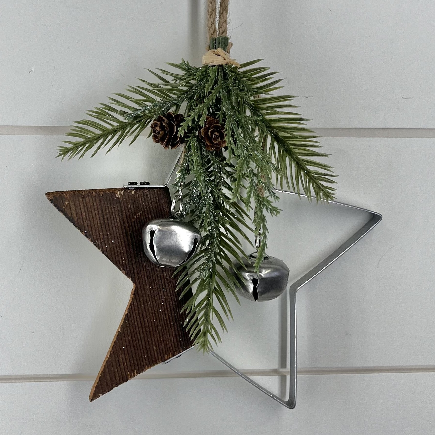Assorted Glittered Wood & Silver Metal Cutout Ornaments w/Pine