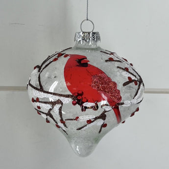 Ornament - Glass with Cardinal & Snow