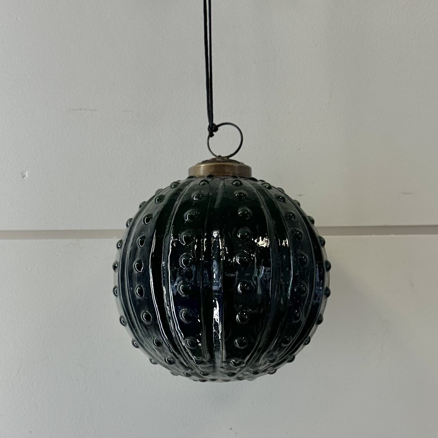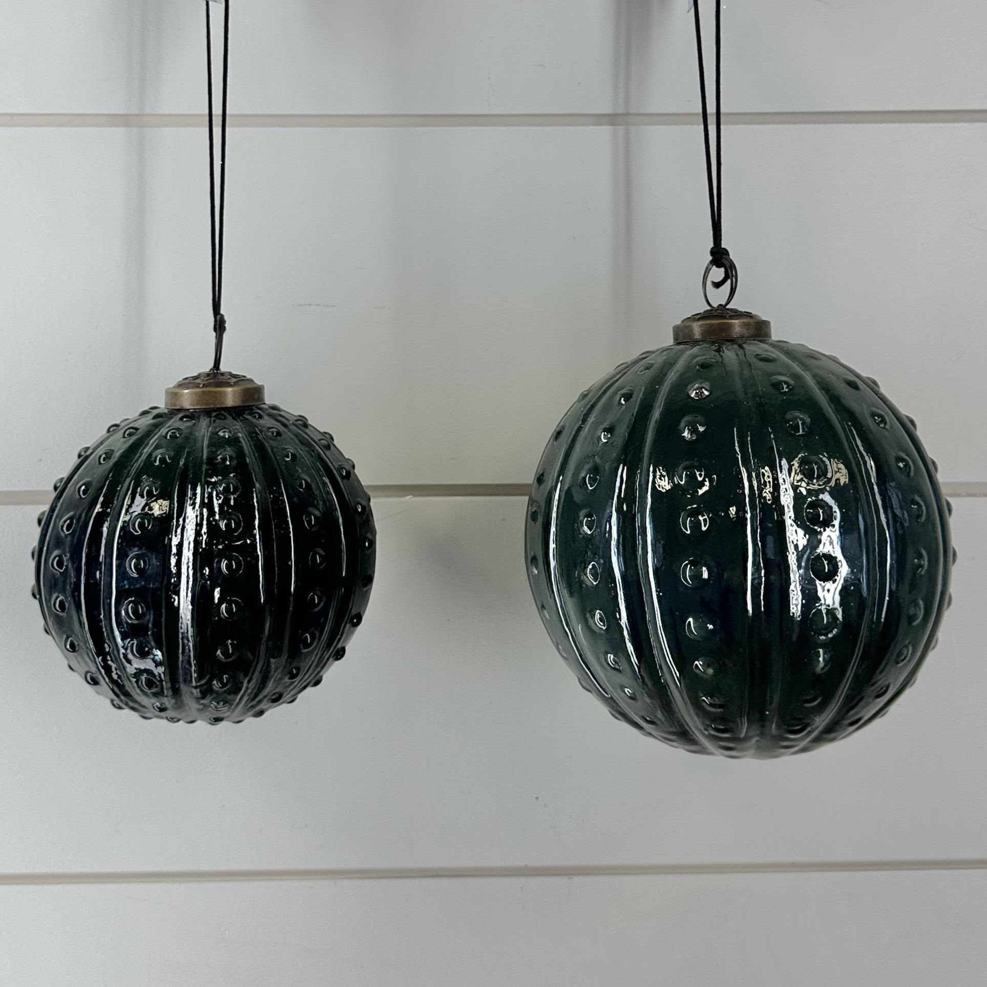 4 Inch Dark Green Glossy Dot Embossed Glass Ornament
