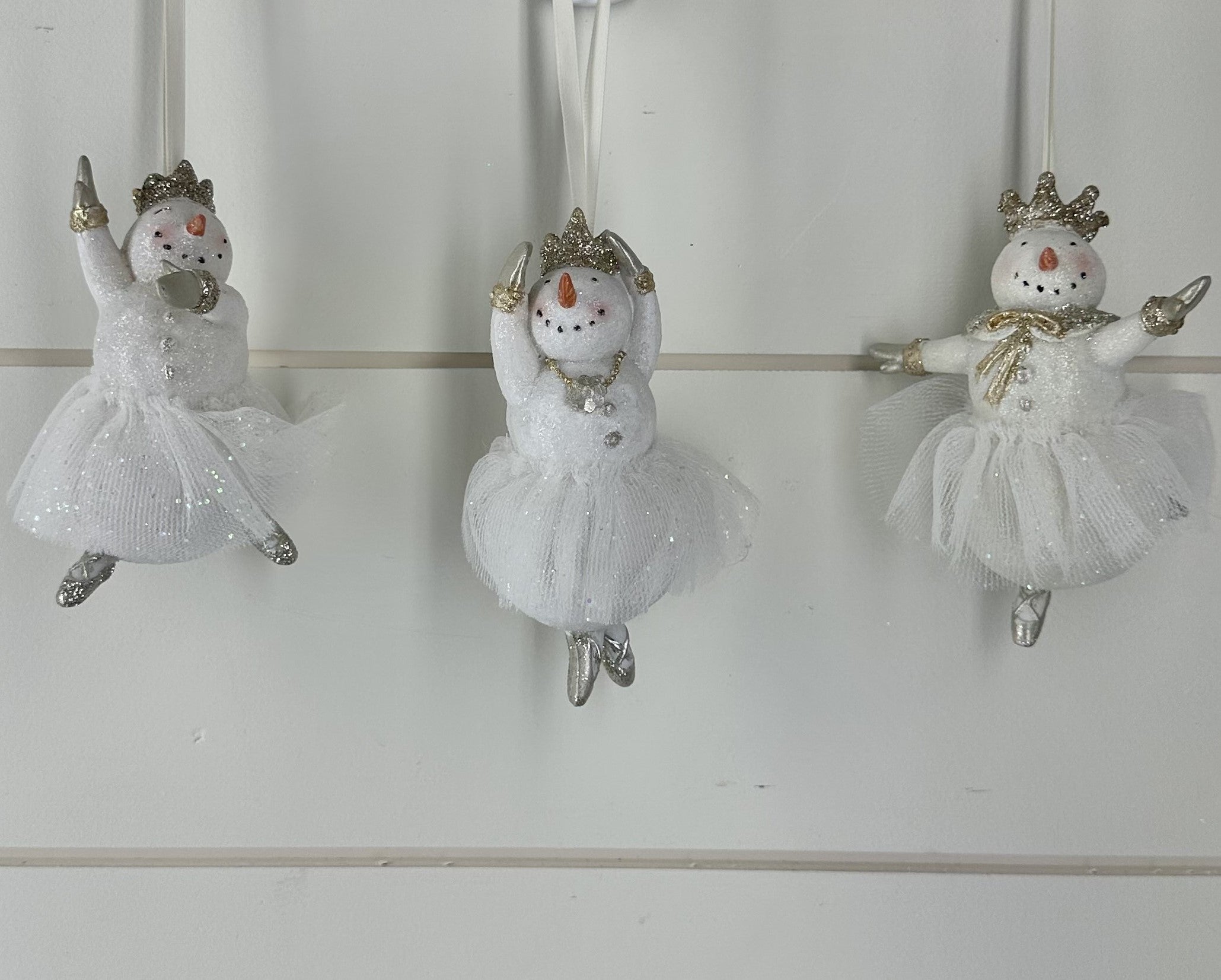 Glittered Snow Lady Ballerinas w/Tulle Tutu Ornament. Comes in three positions to choose from.