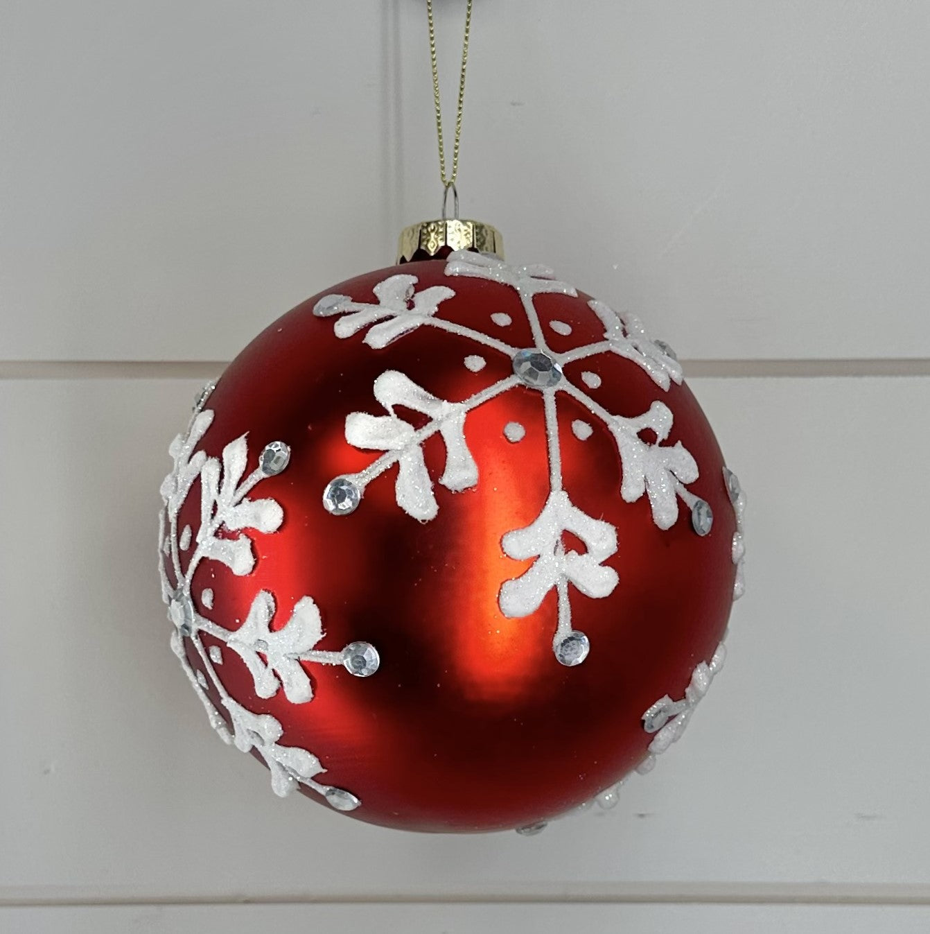 Ornament - Red & White Glass with Snowflake