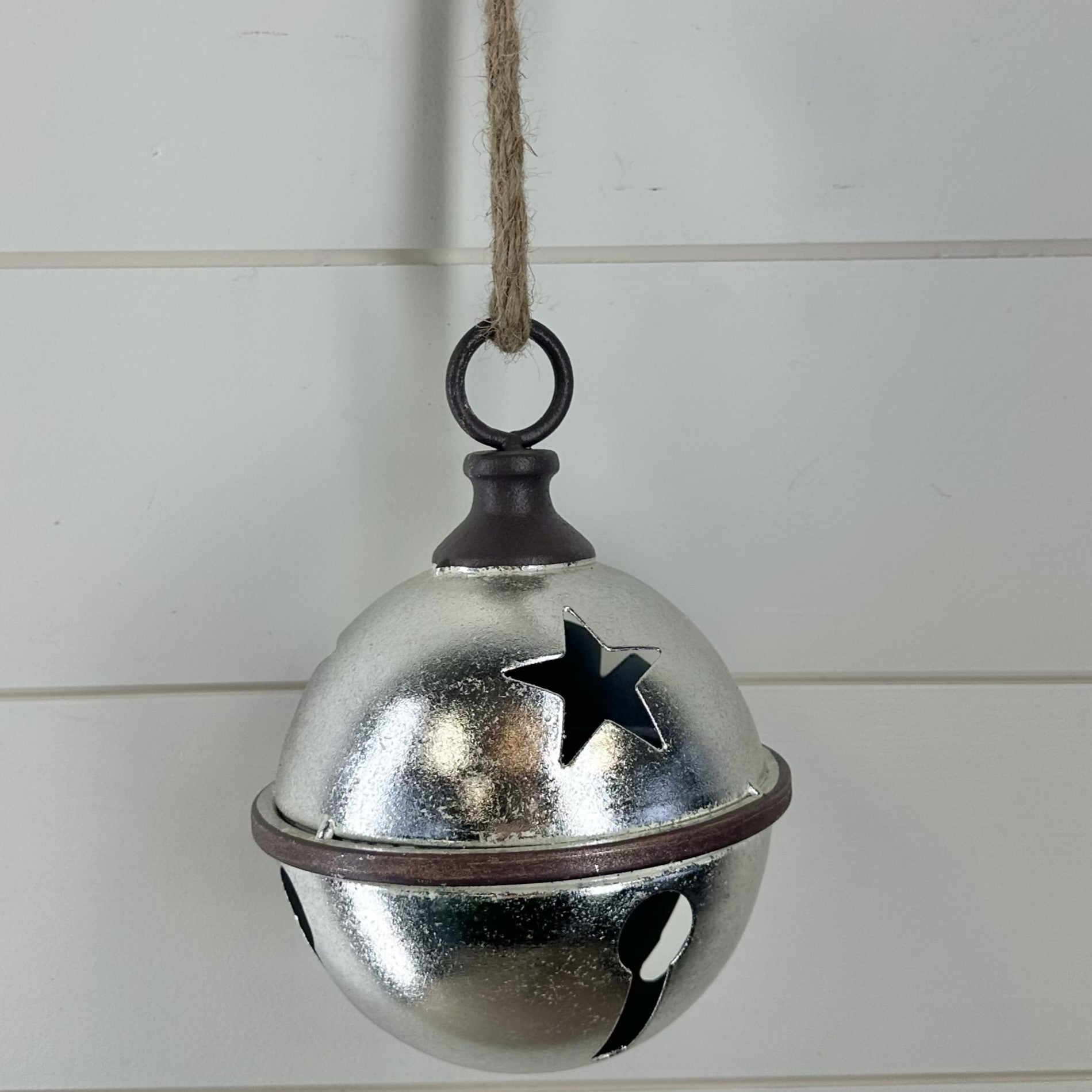 8 Inch Silver Jingle Bell w/Rusty Band and Hanger