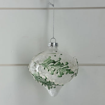 Snowy Clear Glass Ornament w/Green