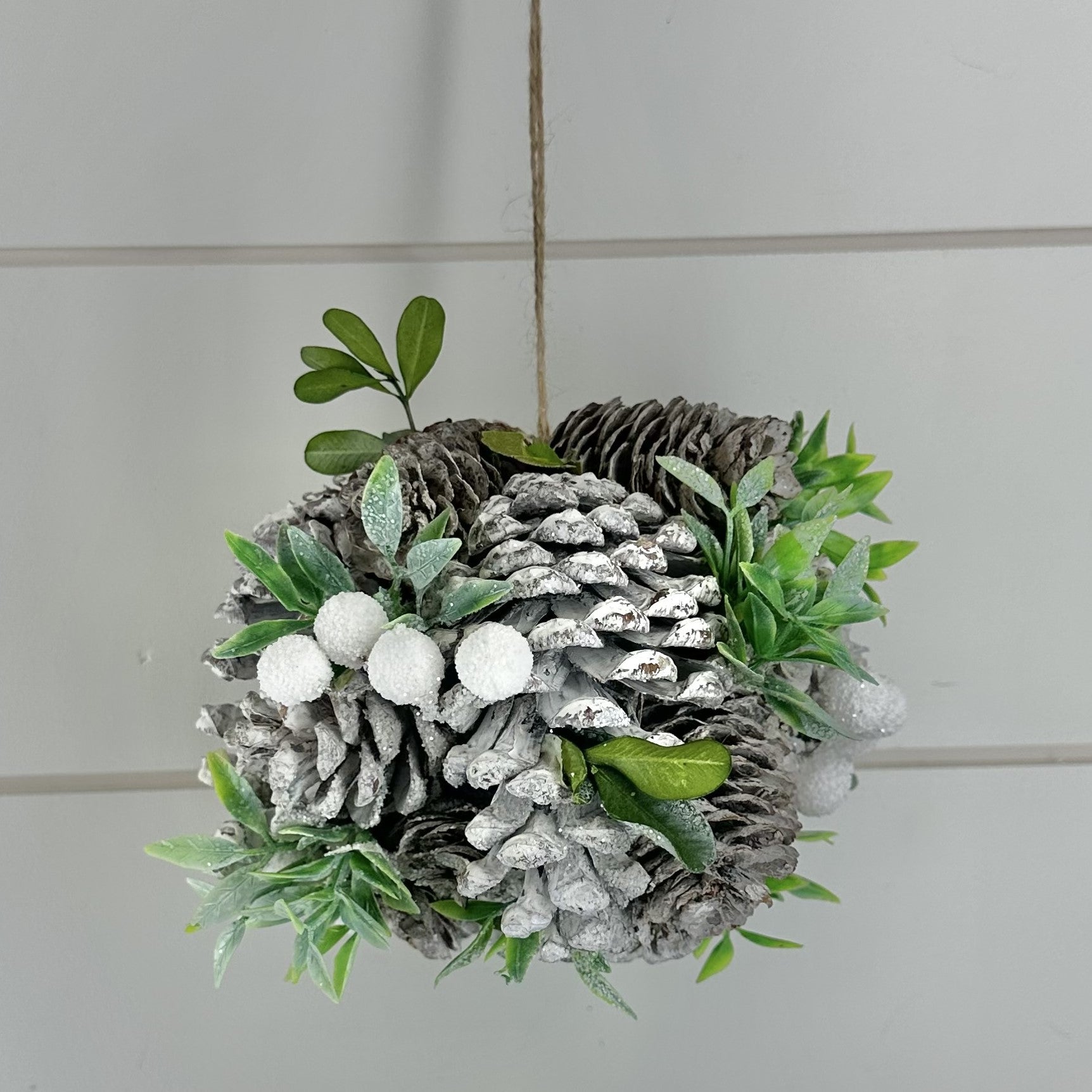 6 Inch Whitewashed Pinecone & Mixed Greenery Ball
