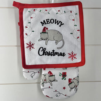 Oven Mitt and Pot Holder Cat Gift Set