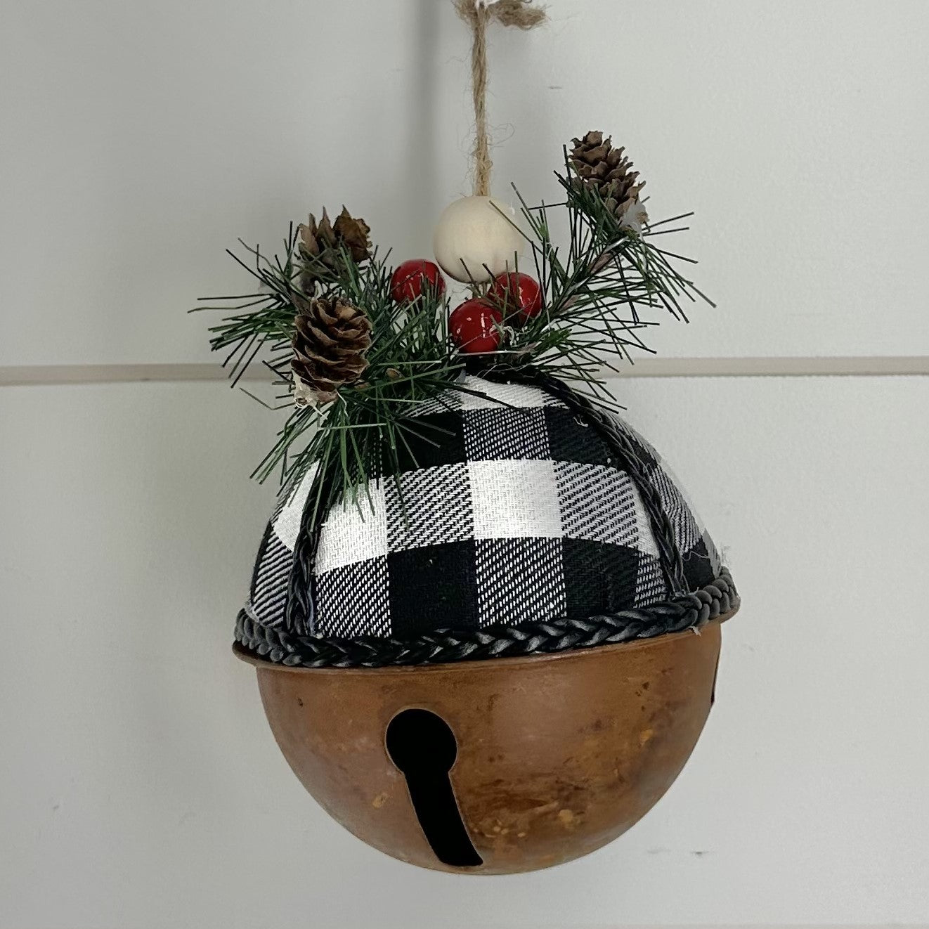 Metal Buffalo Plaid Bell Ornament