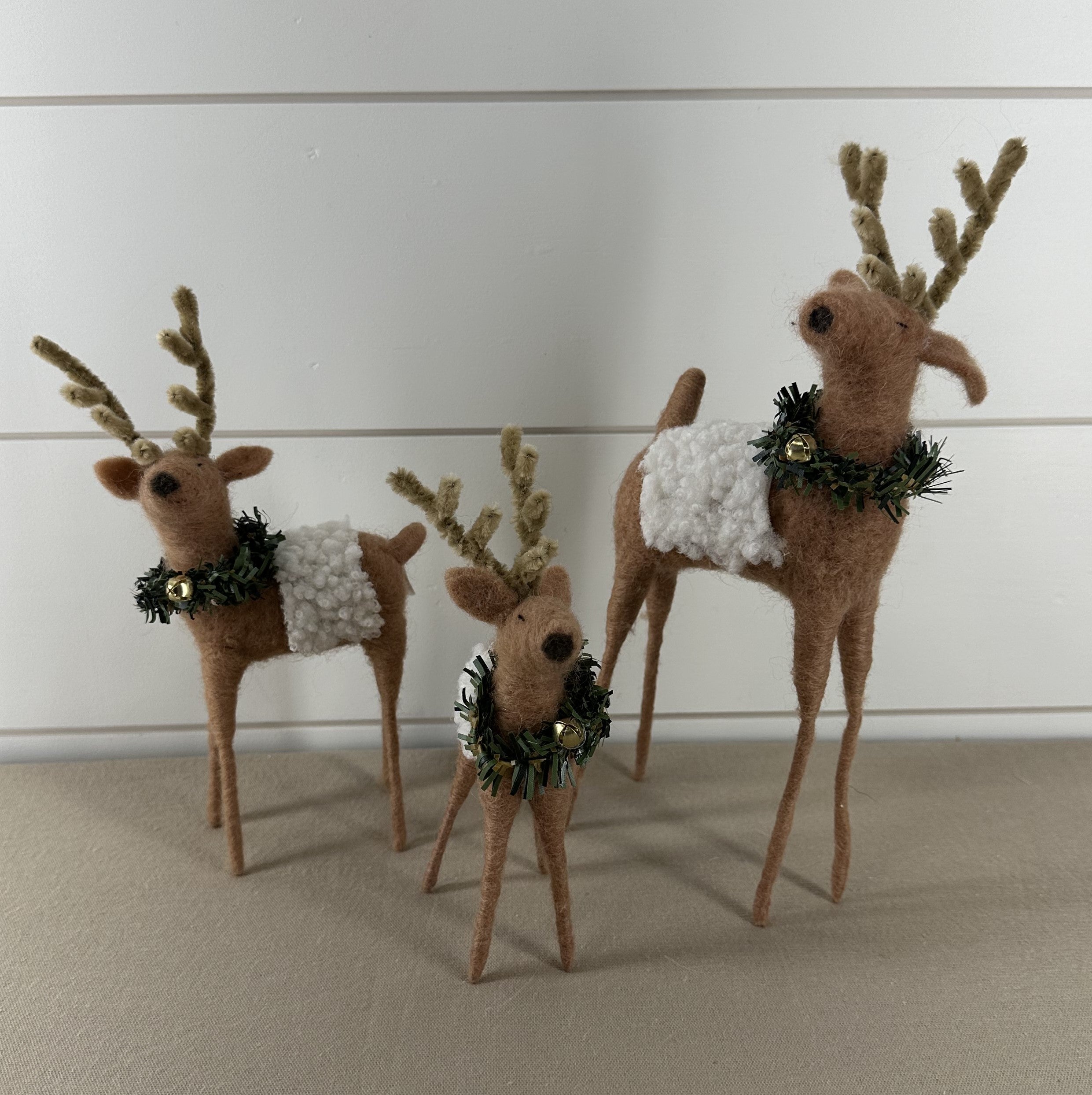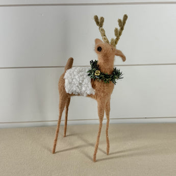 Inch Tan Wool Reindeer w/Wreath & Bell