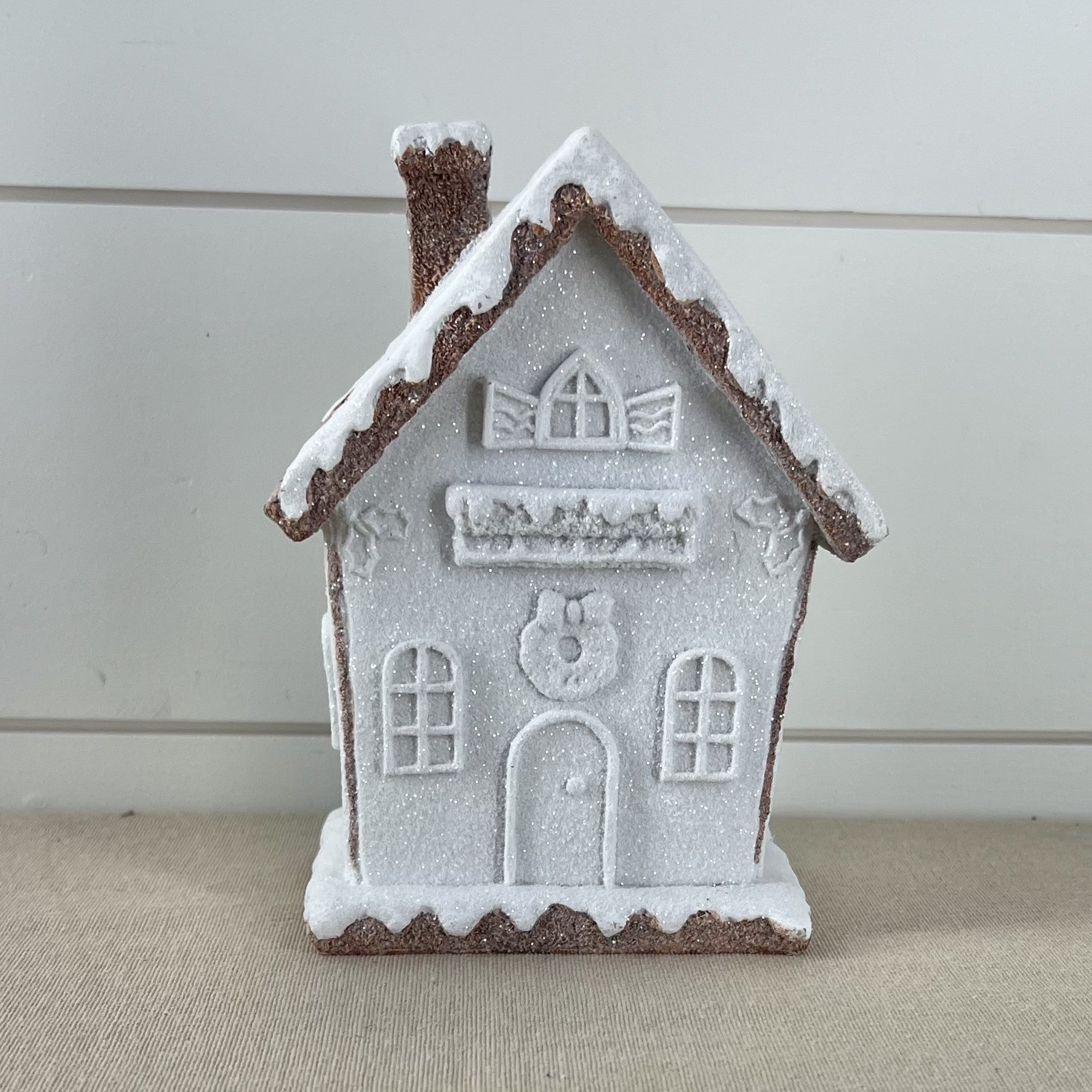 6.25 Inch Glittered White Frosted Gingerbread House