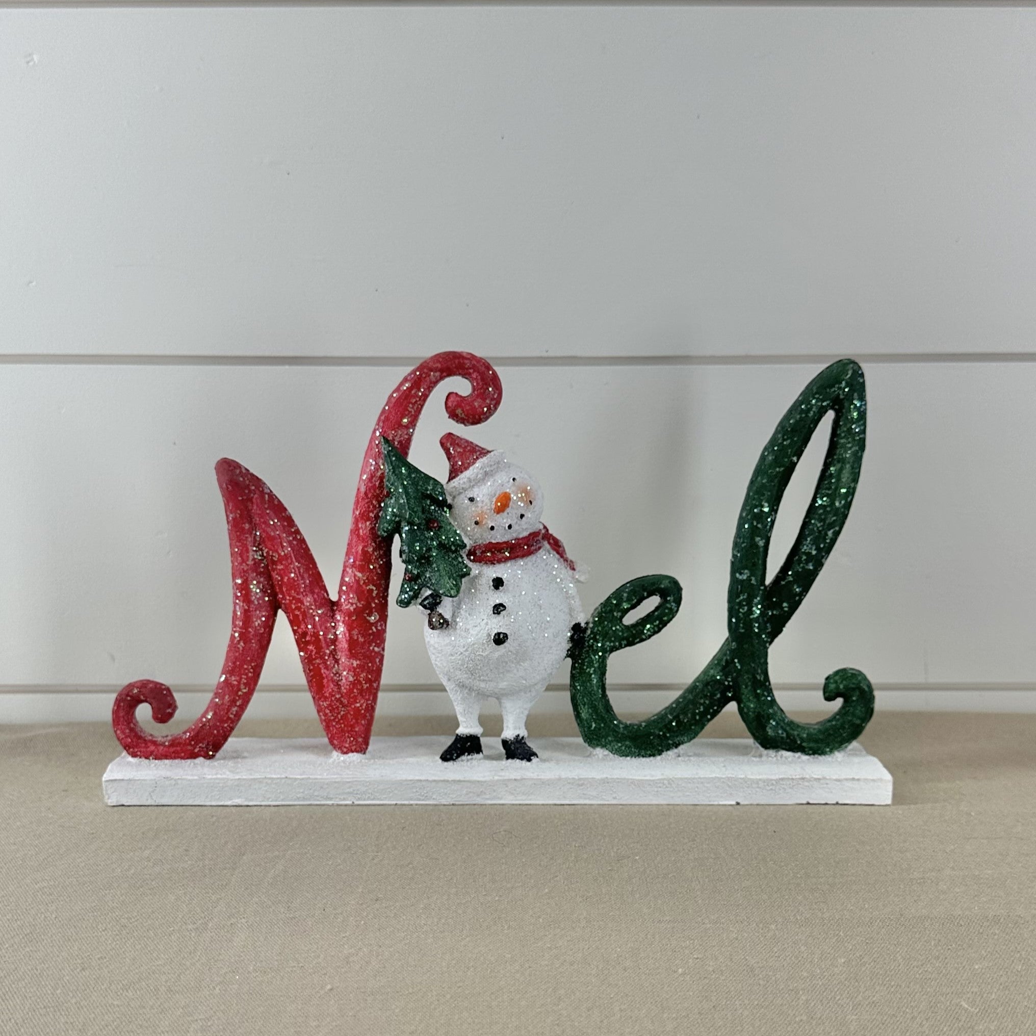 10.5 Inch Glittered Resin NOEL Cutout w/Snowman
