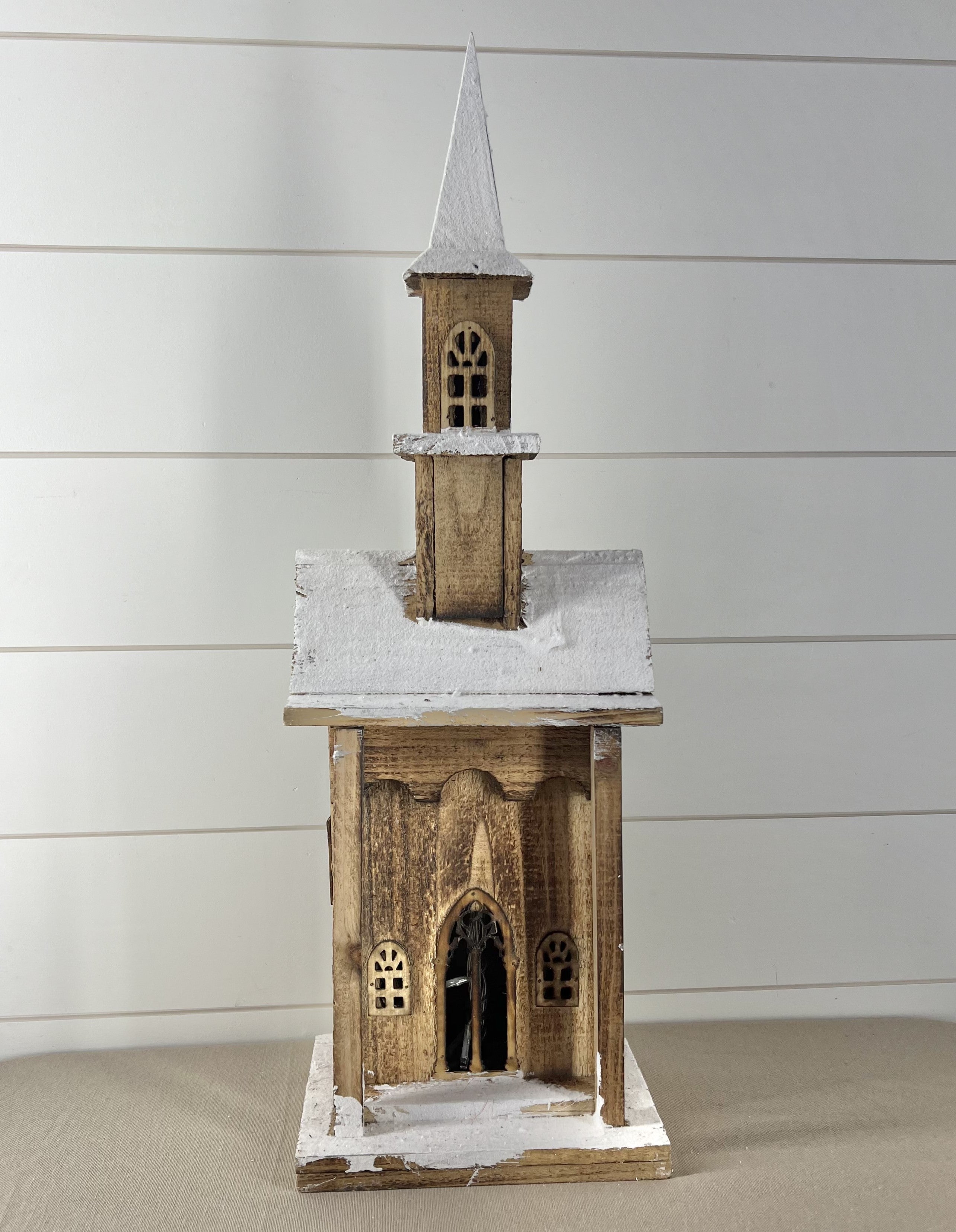 24 Inch Vintage LED Weathered Wood Church w/Snow