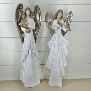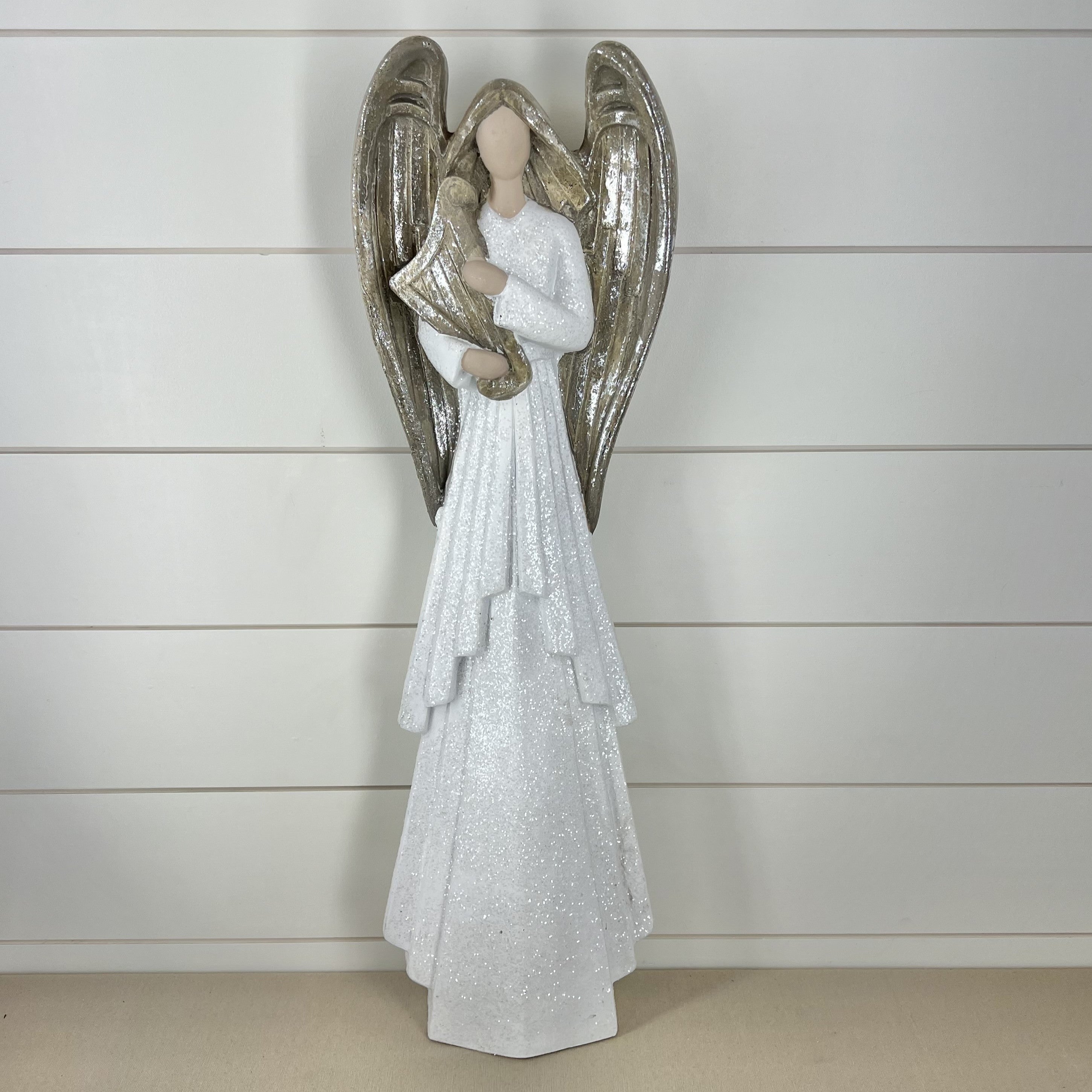 White Glittered Angels Playing Instrument