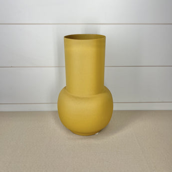 Mustard Yellow Matte Metal Textured Bubble Bottom Vase