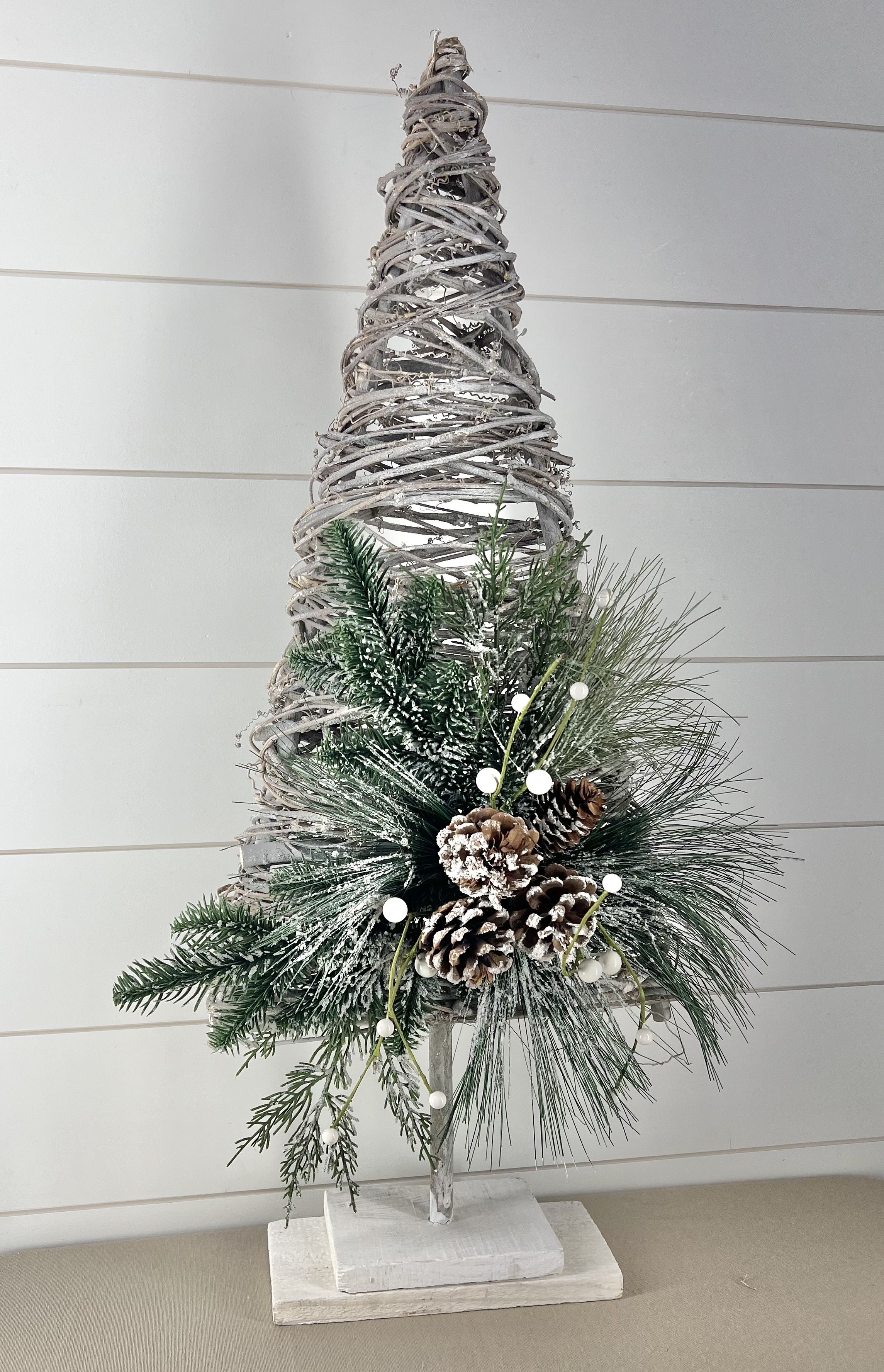 Whitewash Woven Twig Tree on Pedestal