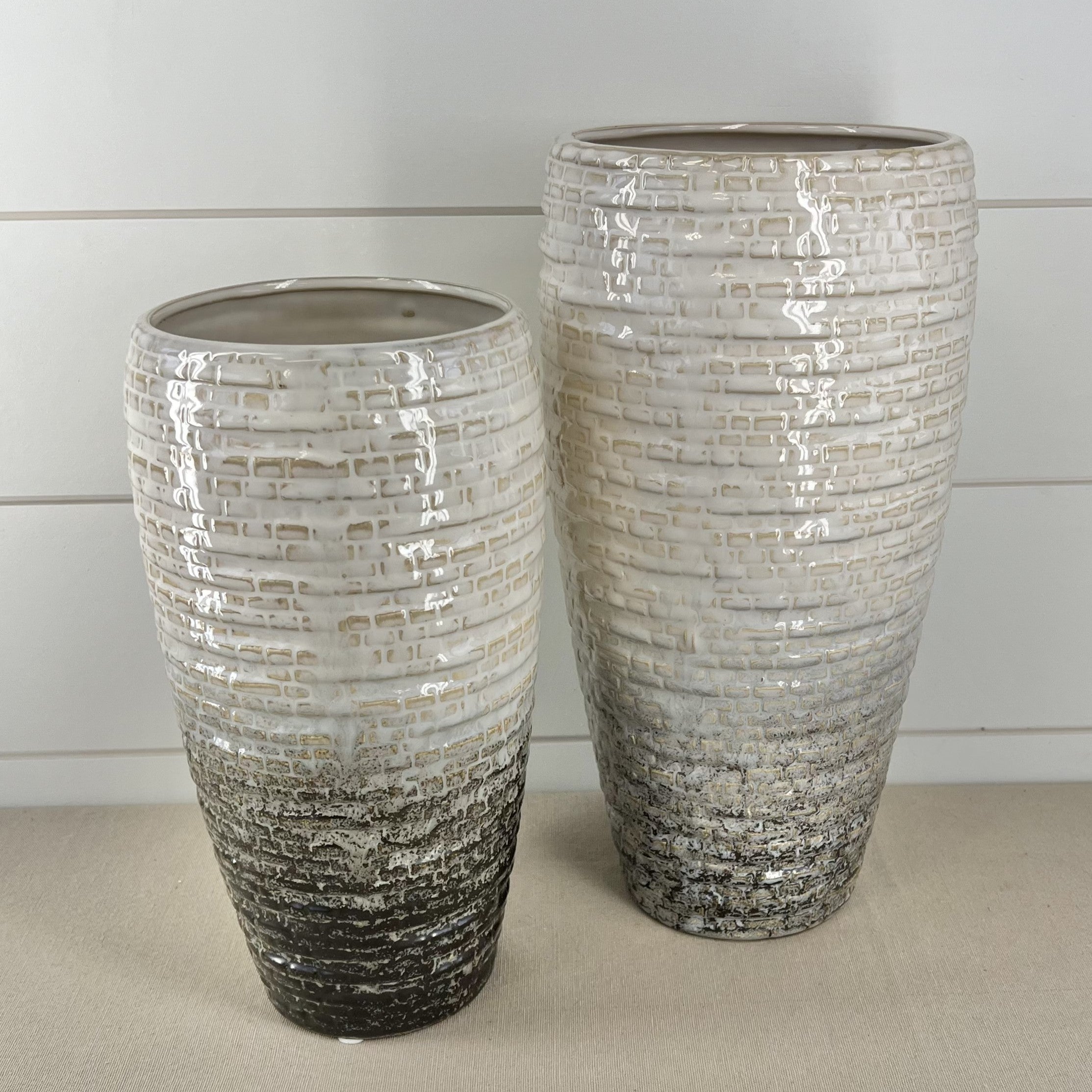 Vase - Off White & Brown