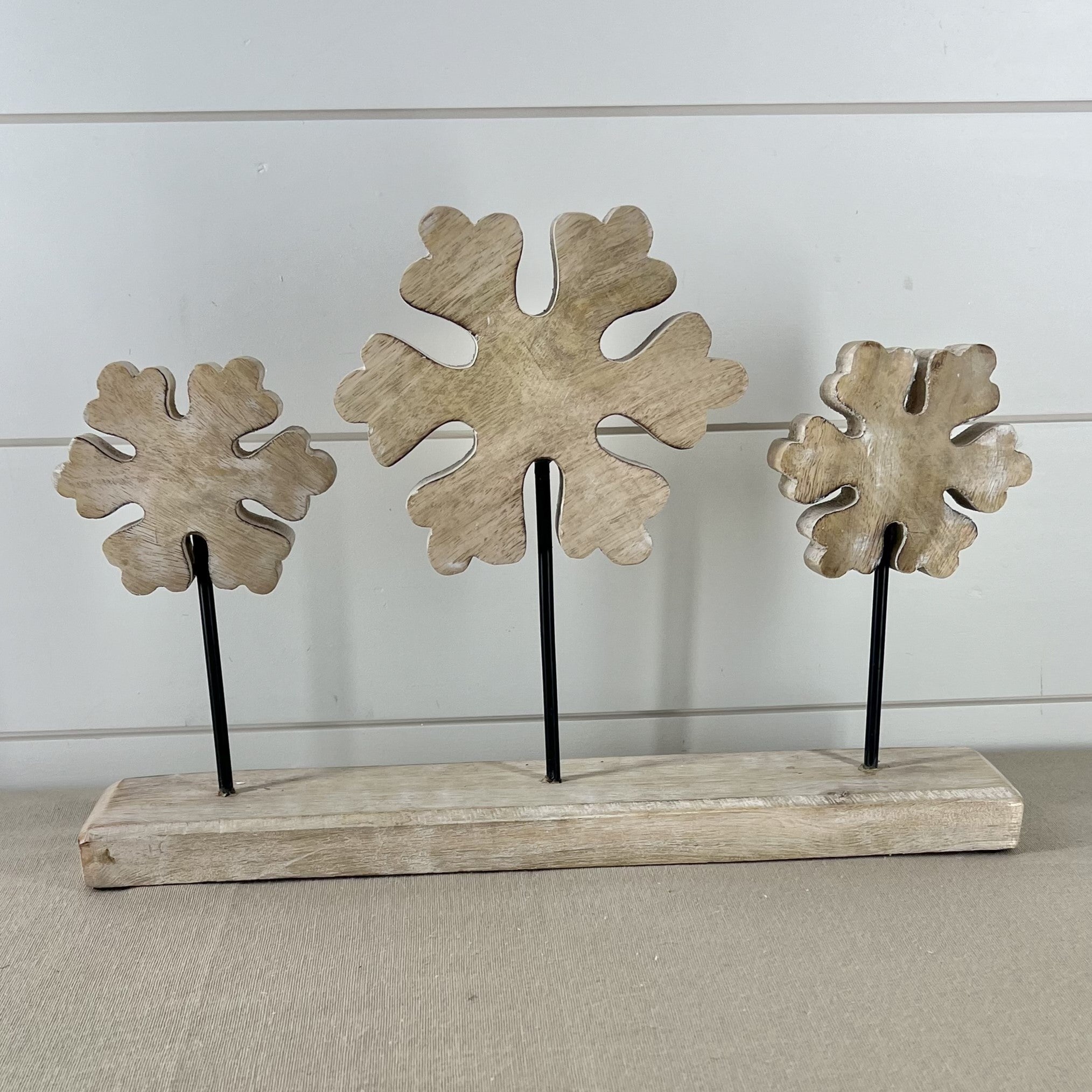 Snowflake Mango Wood Cutout on Stand